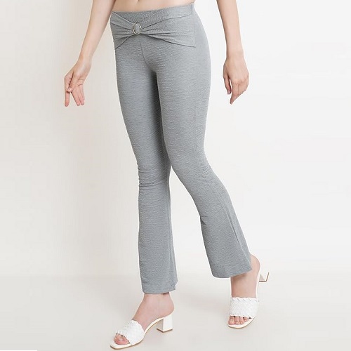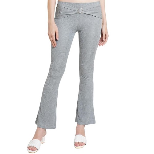 Grey Crush Bootcut Stretchable Self Design Ring Trouser