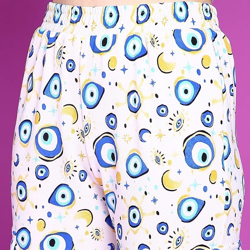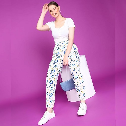 White Floral Printed Elastic Waistband Jogger