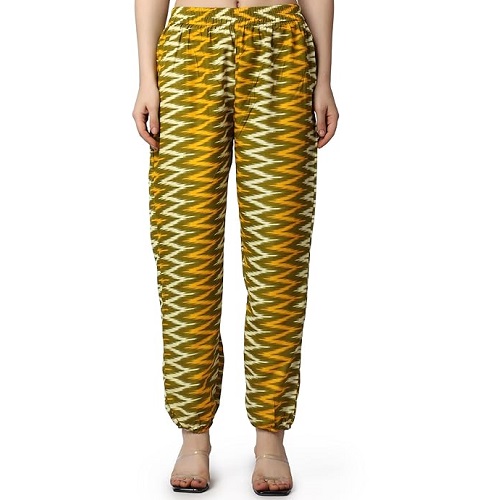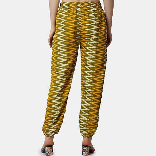 Yellow-Green Zig-Zag Printed Regular Wear Loose Fit Full Length Women Jogger